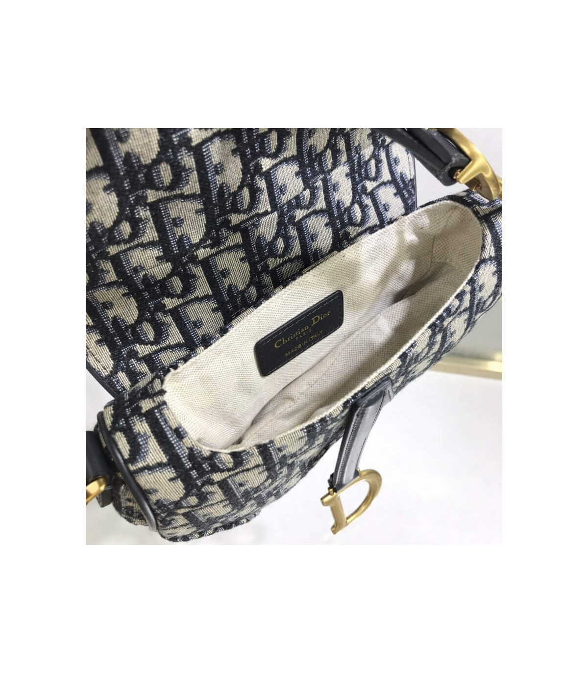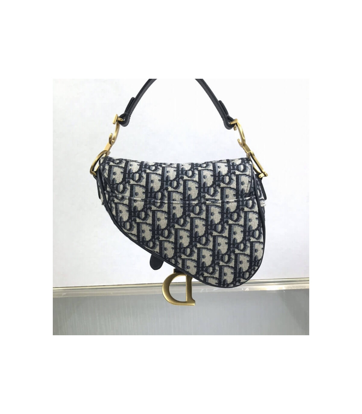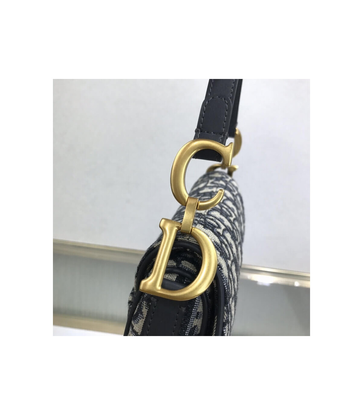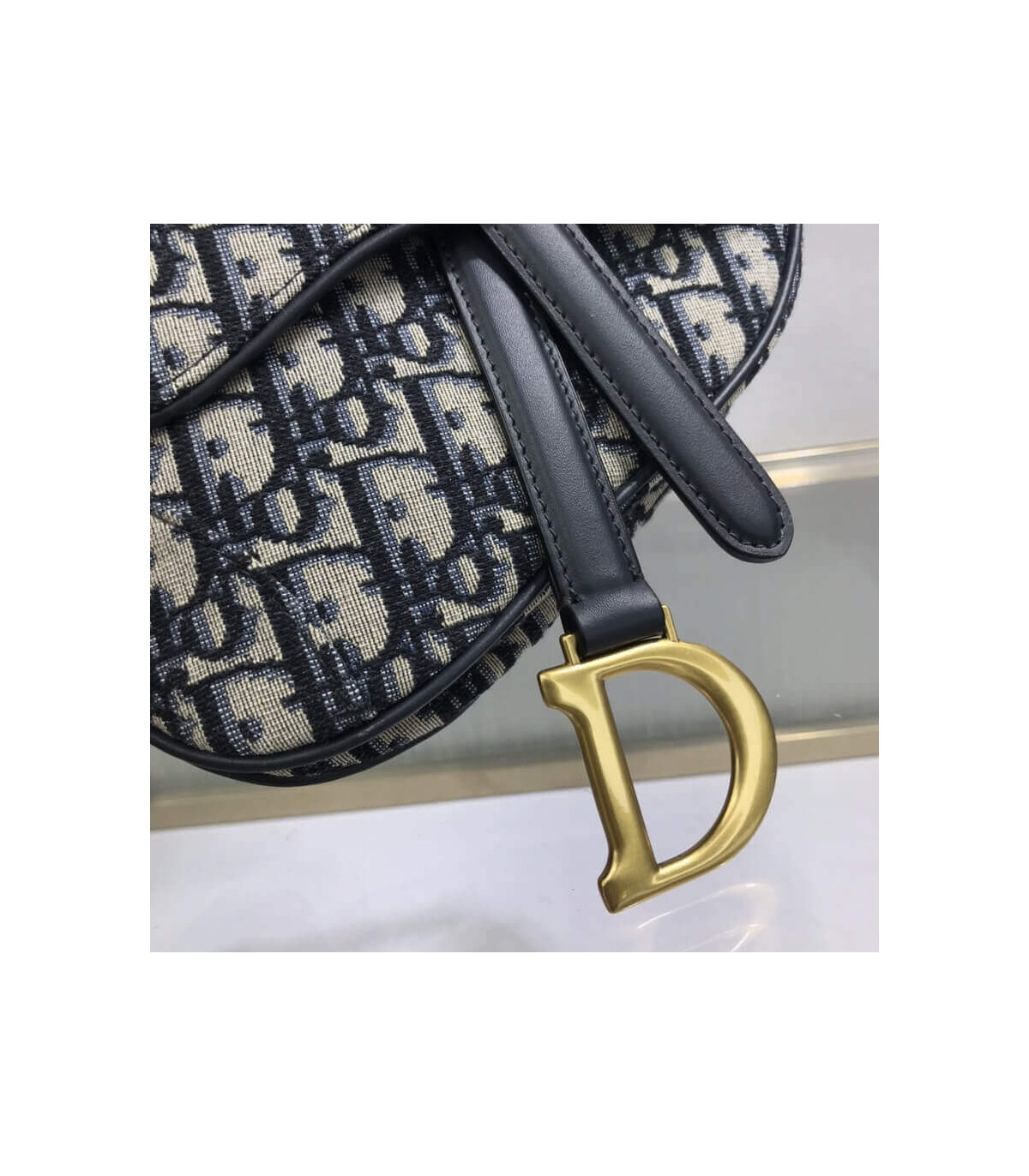 The iconic Saddle bag is reinvented once more by Maria Grazia Chiuri. Featuring a Saddle flap with a magnetic ‘D’ stirrup clasp, it boasts a ‘CD’ signature on each side of the handle. The blue Dior Oblique jacquard is embellished with antique gold-finish metal hardware. The miniature Saddle bag can be carried by hand as an ideal evening companion or customized with different shoulder straps.
