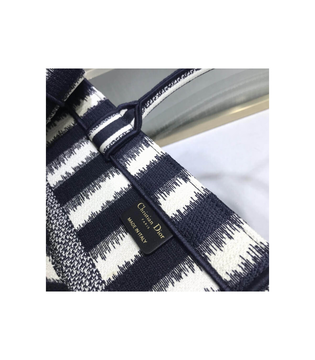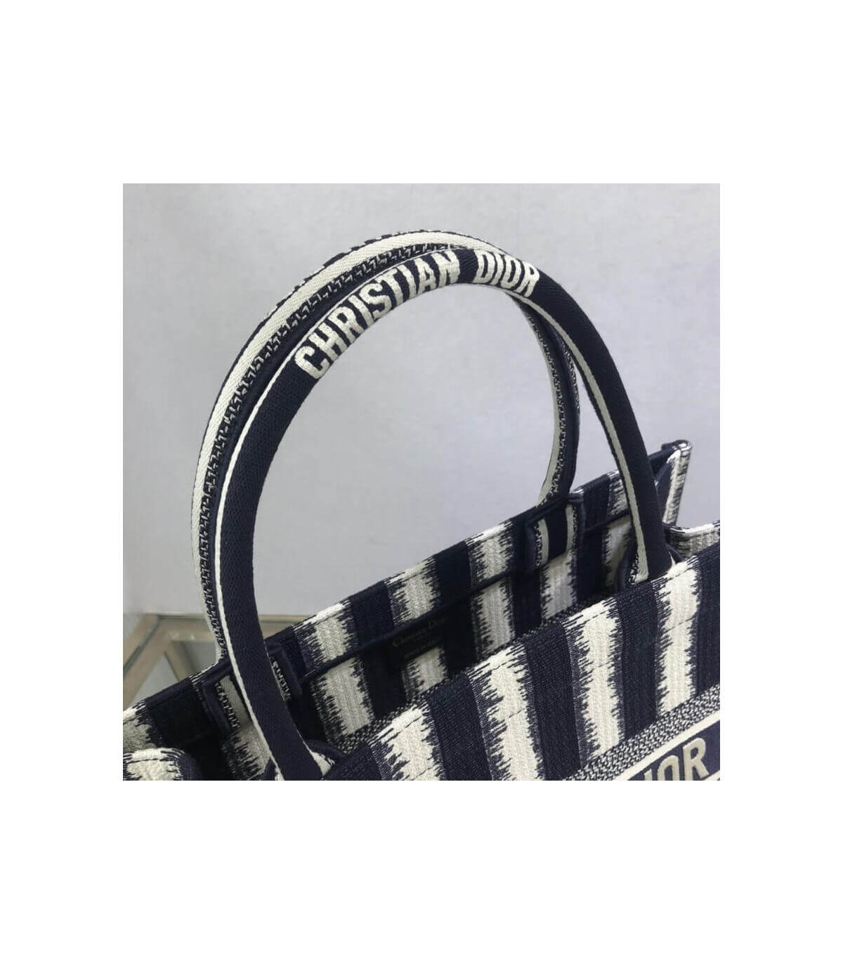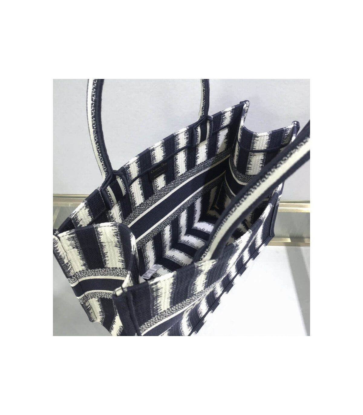Christian Dior Small Book Tote Beige Stripes Embroidery