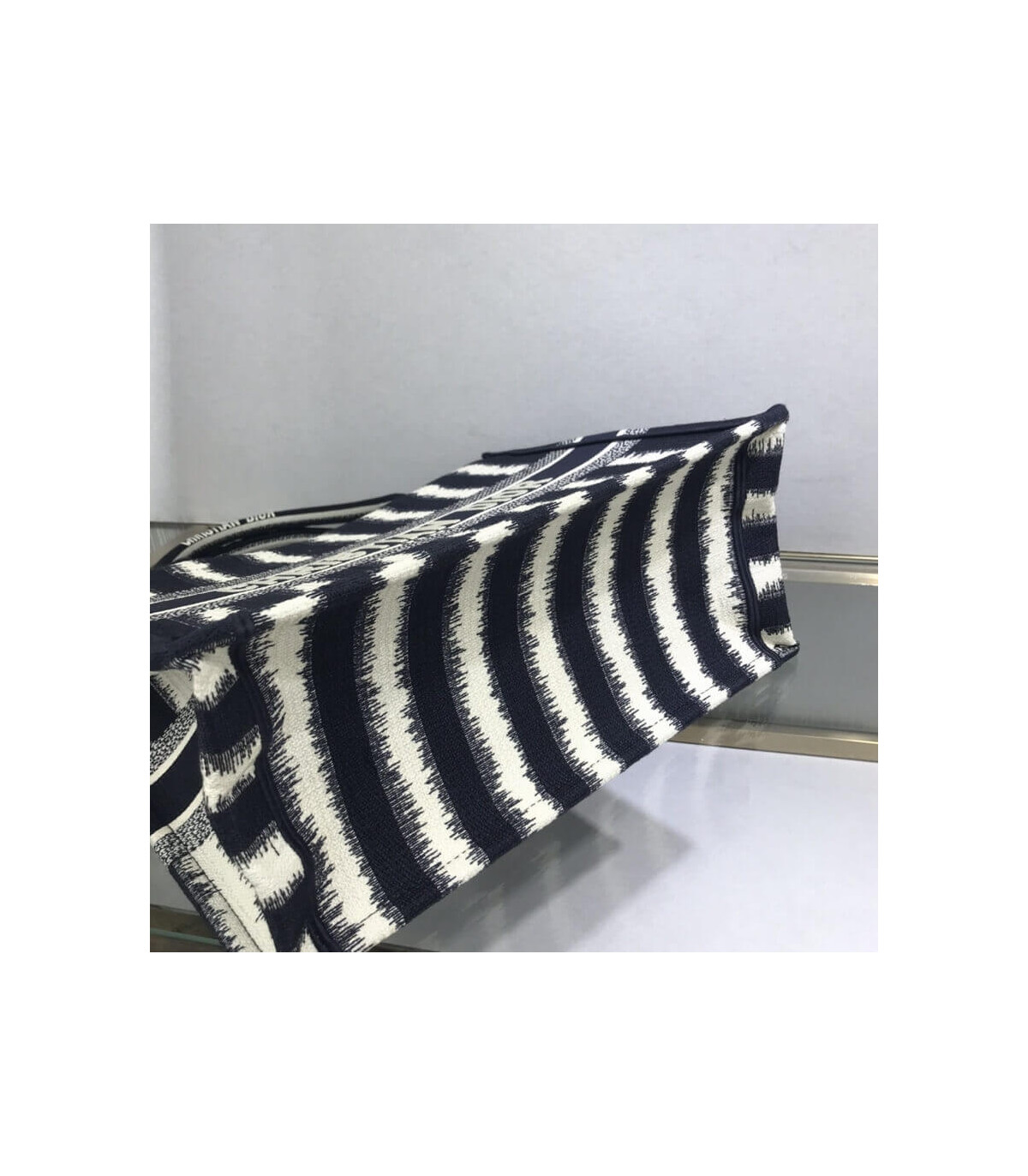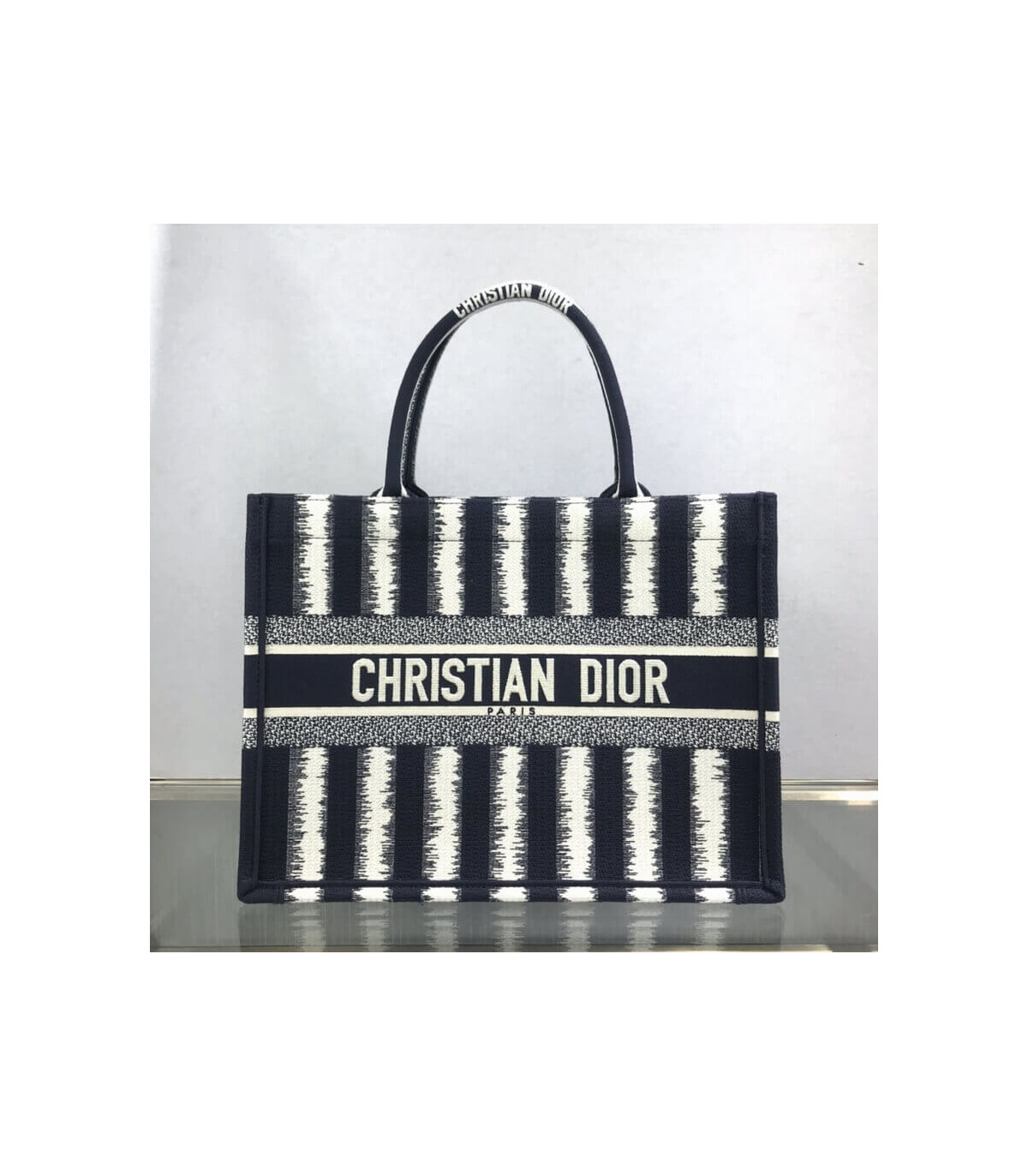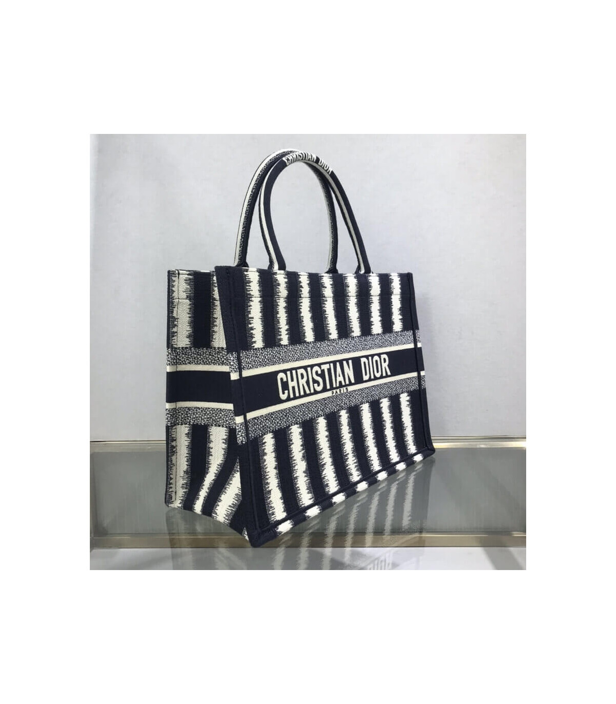 Christian Dior Small Book Tote Beige Stripes Embroidery