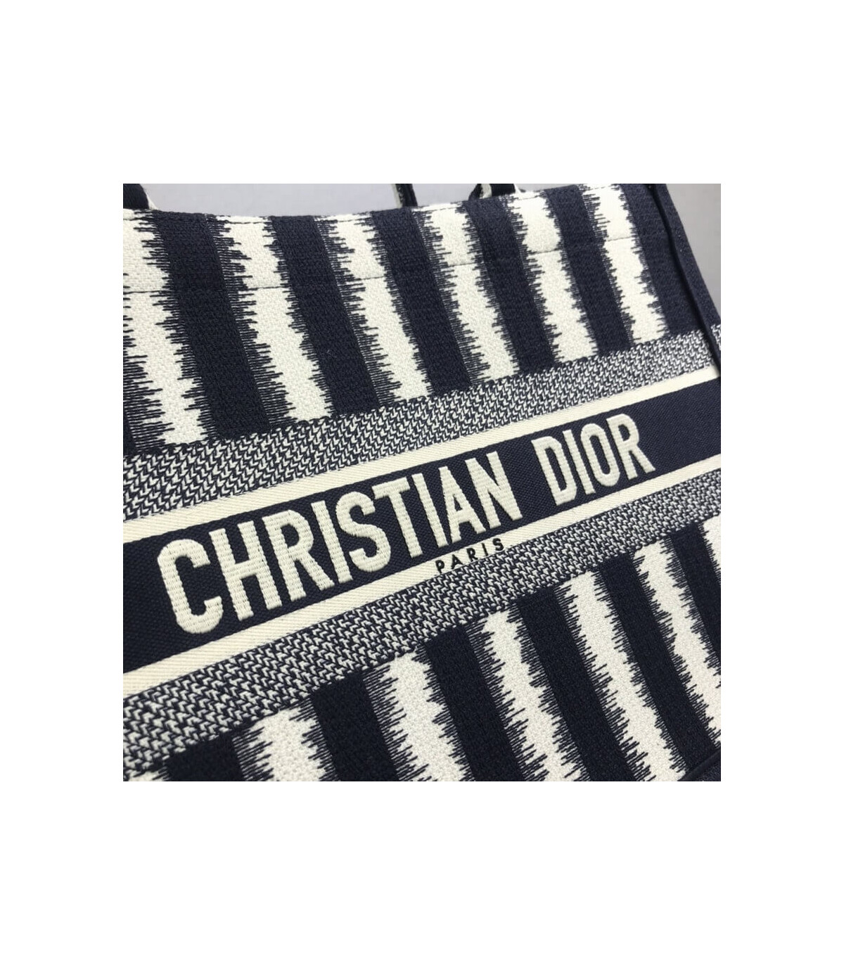 Christian Dior Small Book Tote Beige Stripes Embroidery $345.00