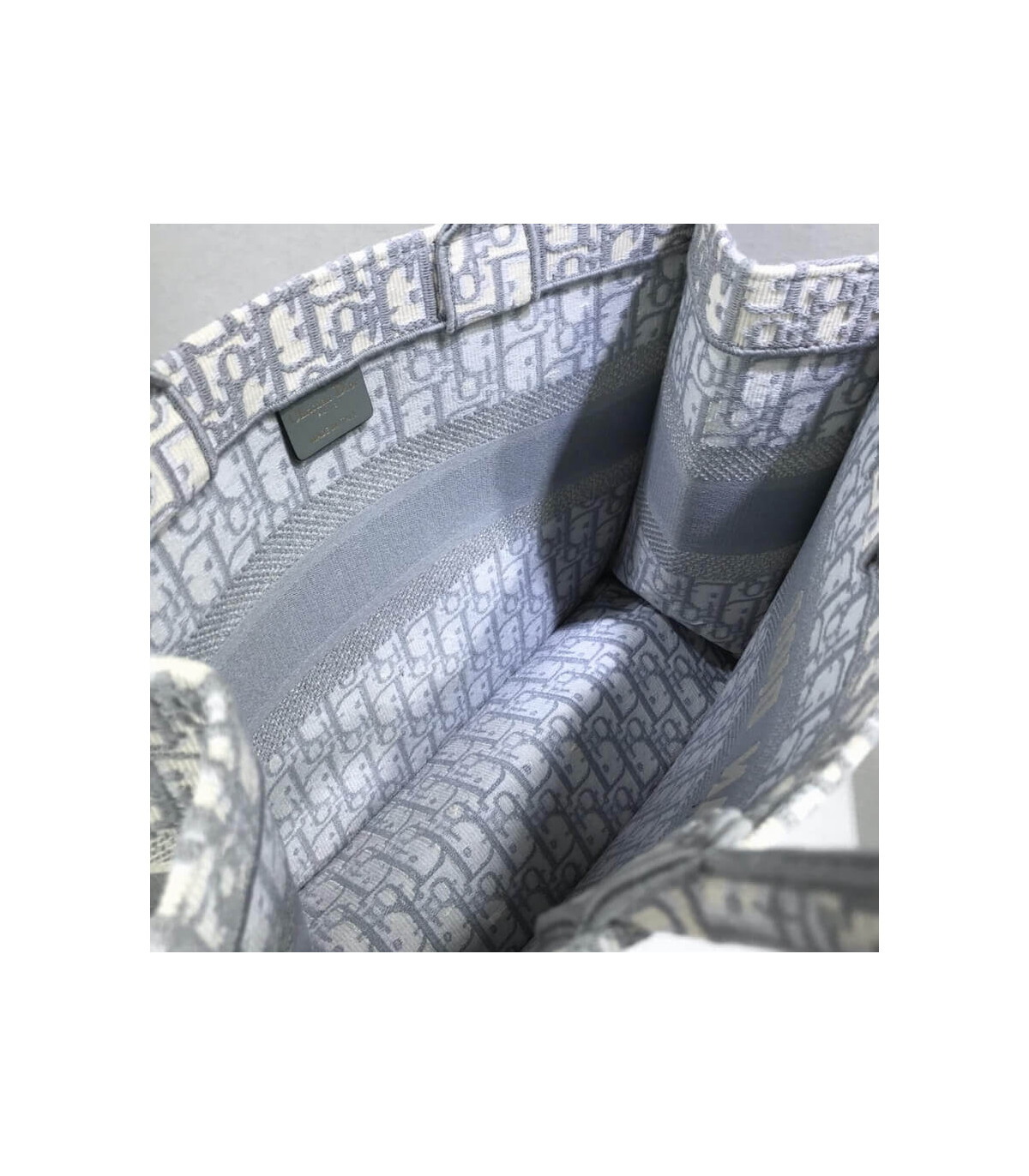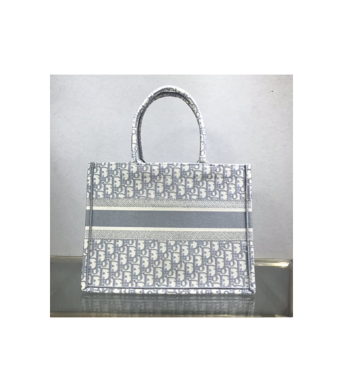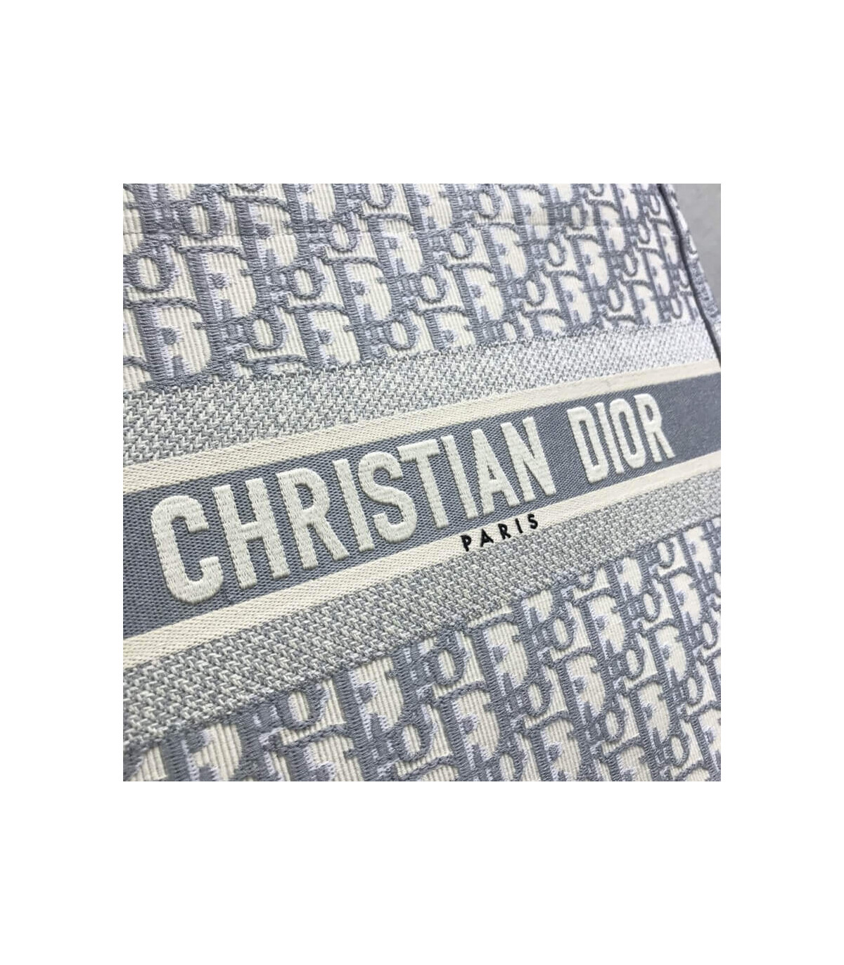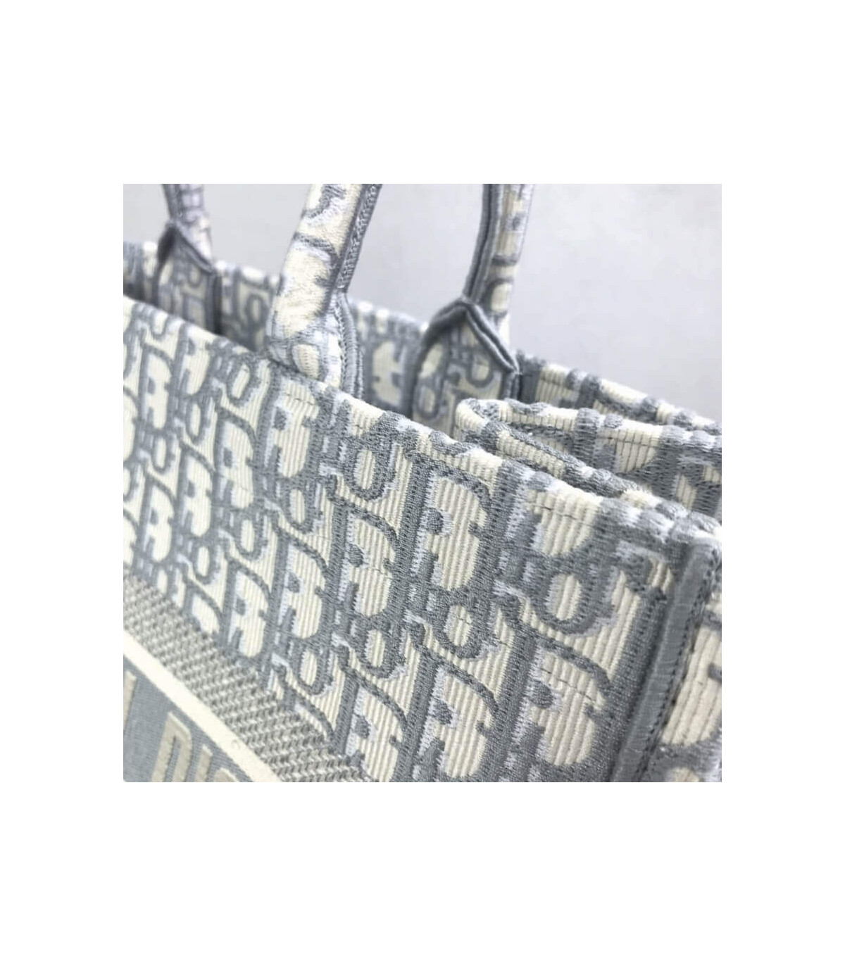 The Dior Book Tote, an original style introduced by Creative Director Maria Grazia Chiuri, has become a staple of the Dior aesthetic. Ideally designed to carry all your daily essentials, the small shape is fully embroidered with a gray Dior Oblique pattern and the ‘Christian Dior’ signature on the front. This carryall is a perfect example of the Dior savoir-faire and it may be worn with other small accessories or the Mitzah scarf for a complete look.
