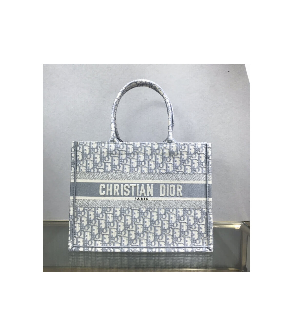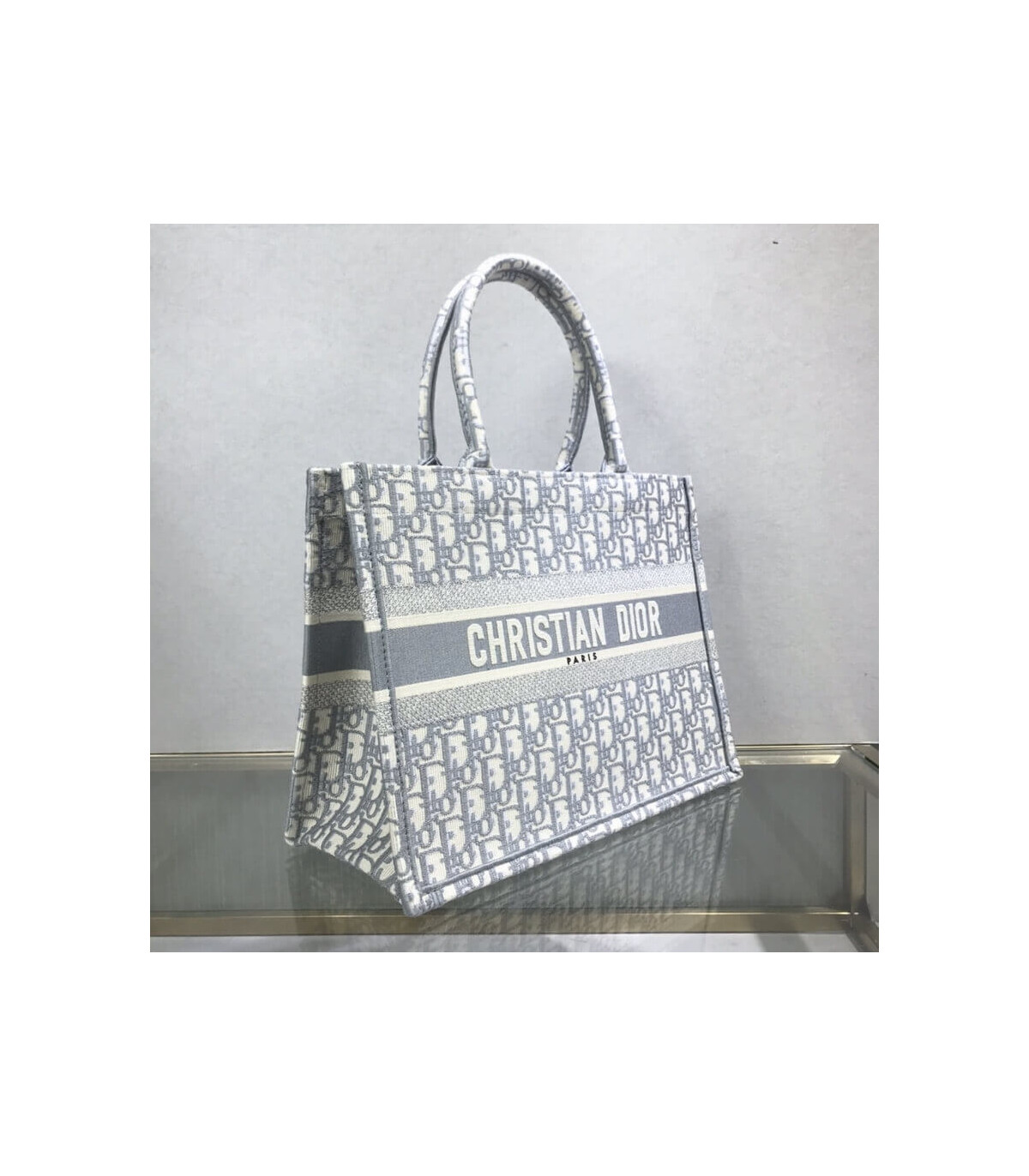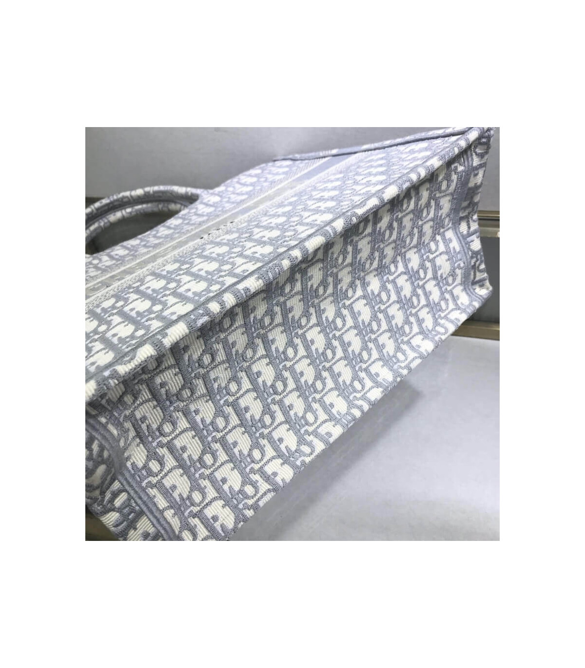 The Dior Book Tote, an original style introduced by Creative Director Maria Grazia Chiuri, has become a staple of the Dior aesthetic. Ideally designed to carry all your daily essentials, the small shape is fully embroidered with a gray Dior Oblique pattern and the ‘Christian Dior’ signature on the front. This carryall is a perfect example of the Dior savoir-faire and it may be worn with other small accessories or the Mitzah scarf for a complete look.