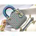 Micro Lady Dior Bag Dark Grey Metallic Canvas Embroidered with Multicolor Crystals