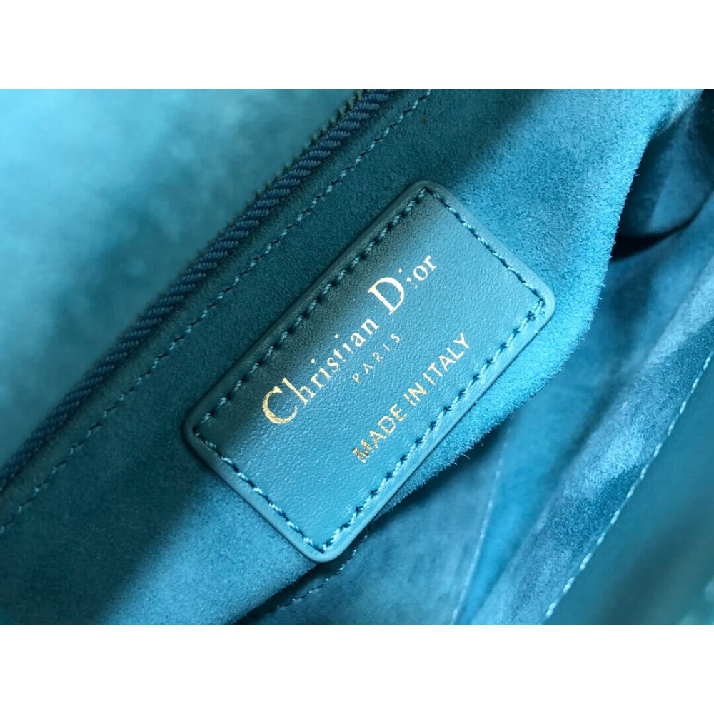 Dior Medium Lady D-Lite Bag Blue Cannage Embroidered Velvet