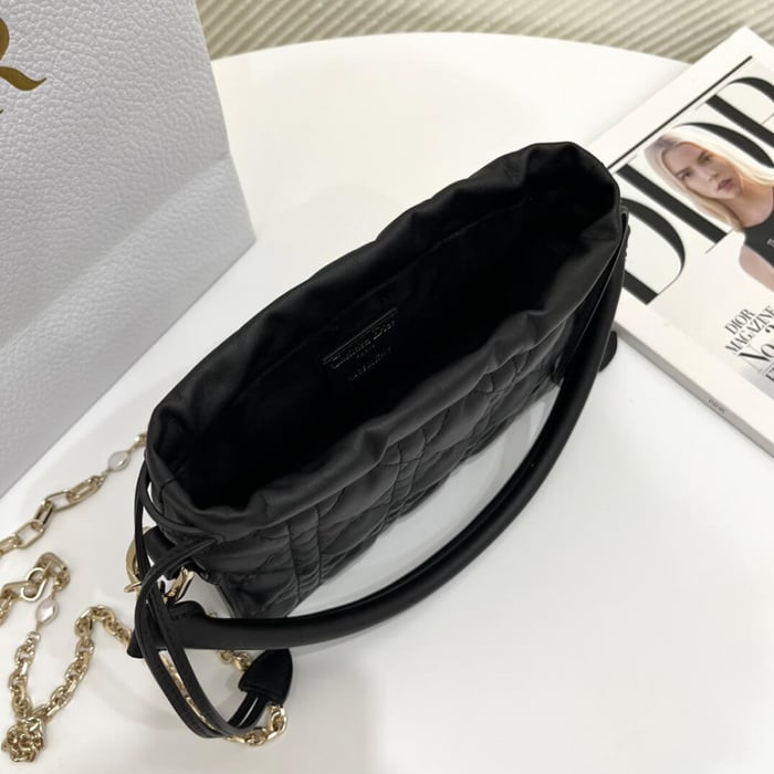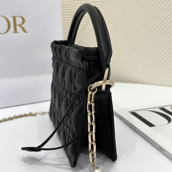 Lady Dior Top Handle Drawstring Mini Bag Black