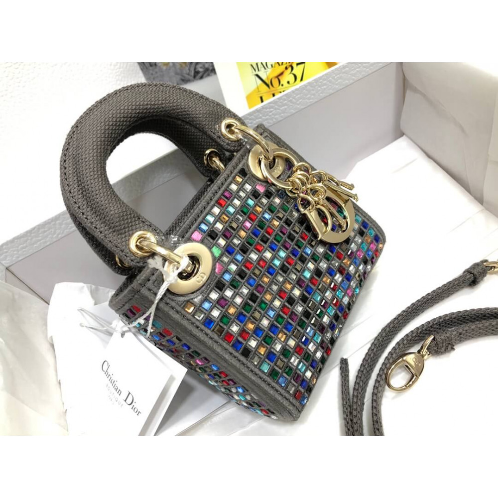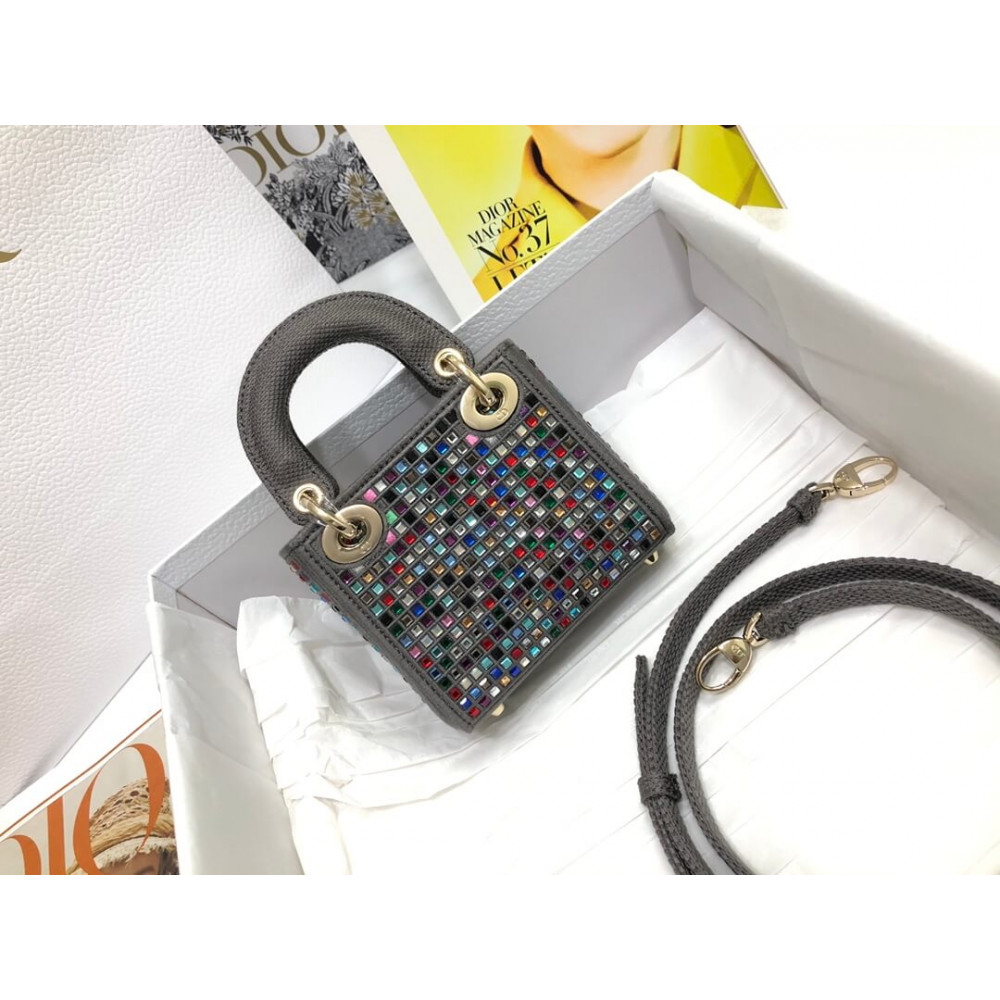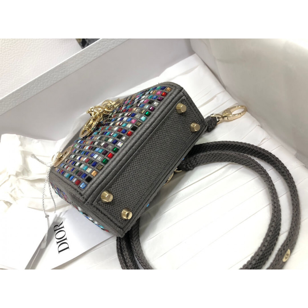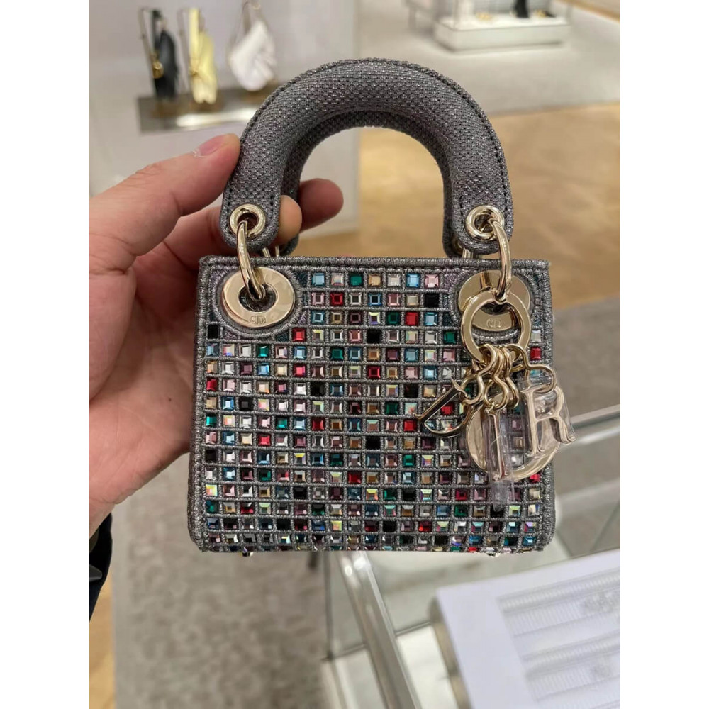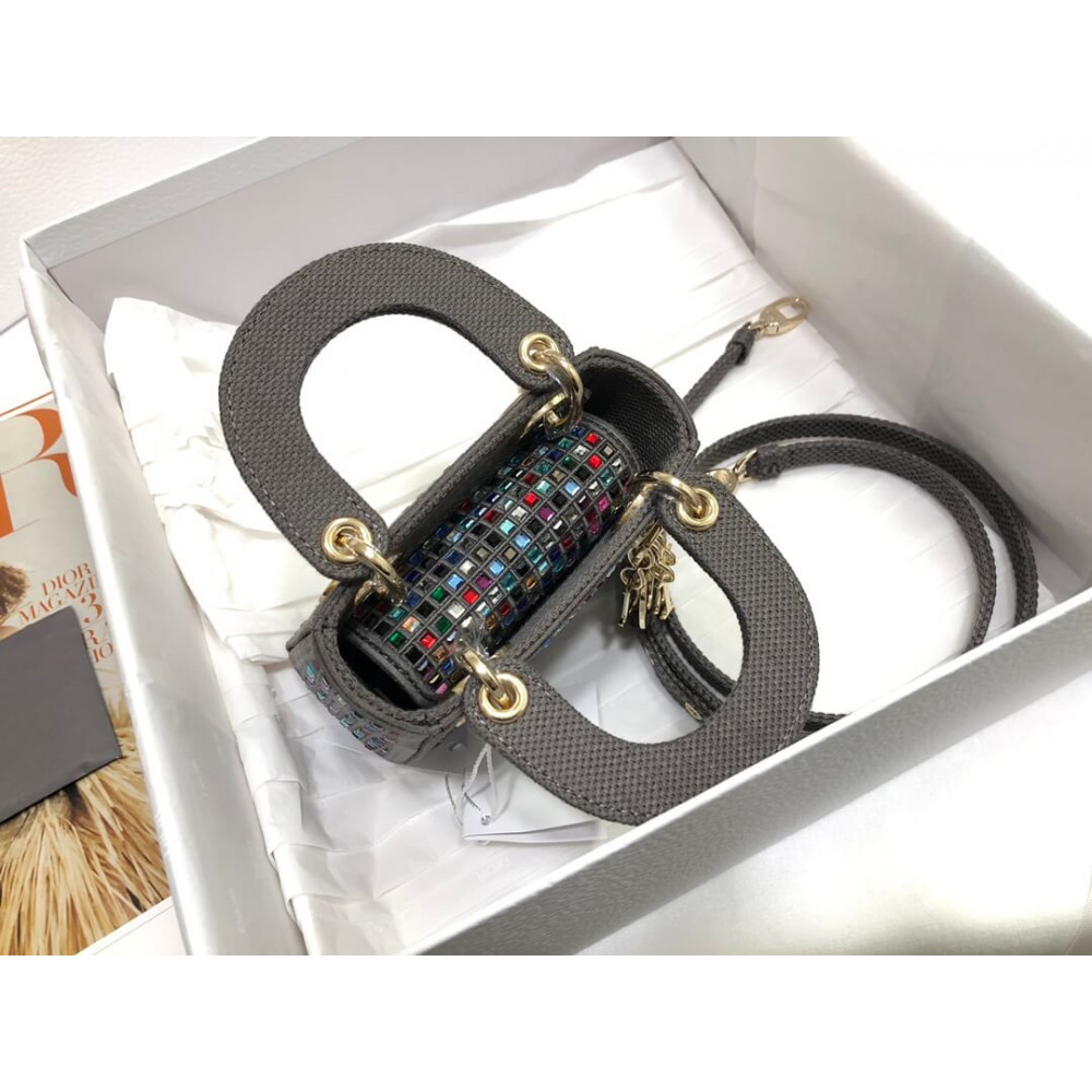 Home Shop All Bags Dior Micro Lady Dior Bag Dark Grey Metallic Canvas Embroidered with Multicolor Crystals