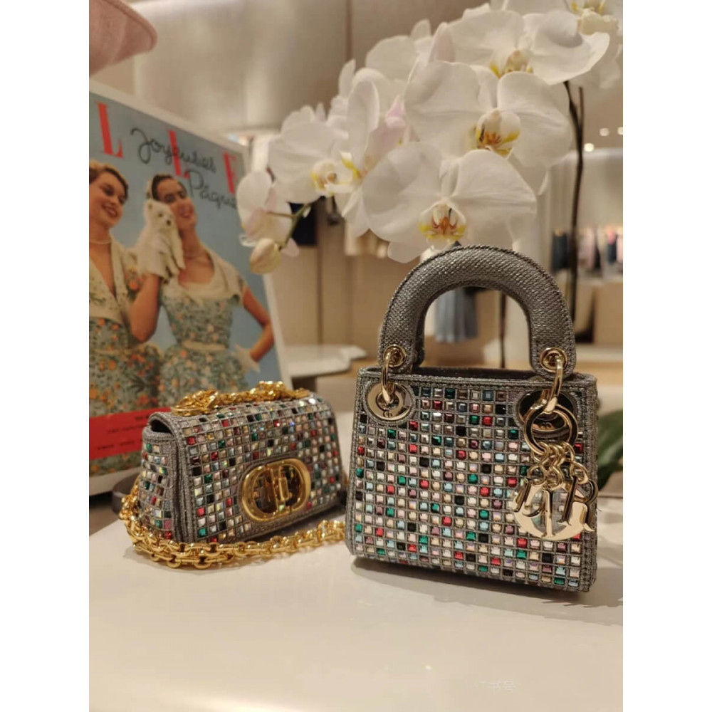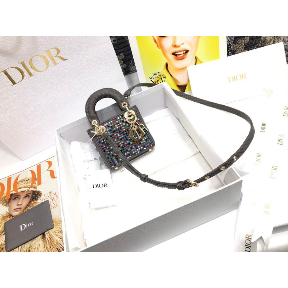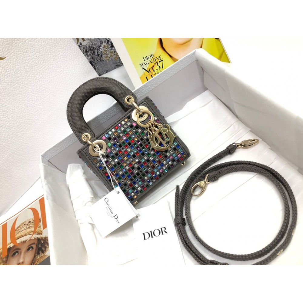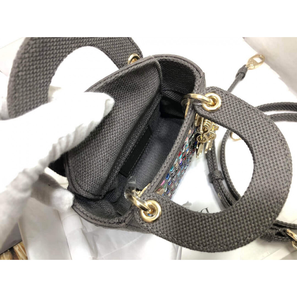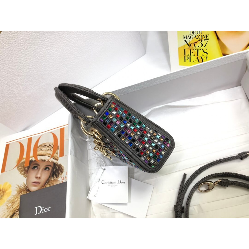 Home Shop All Bags Dior Micro Lady Dior Bag Dark Grey Metallic Canvas Embroidered with Multicolor Crystals