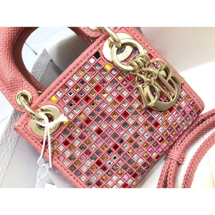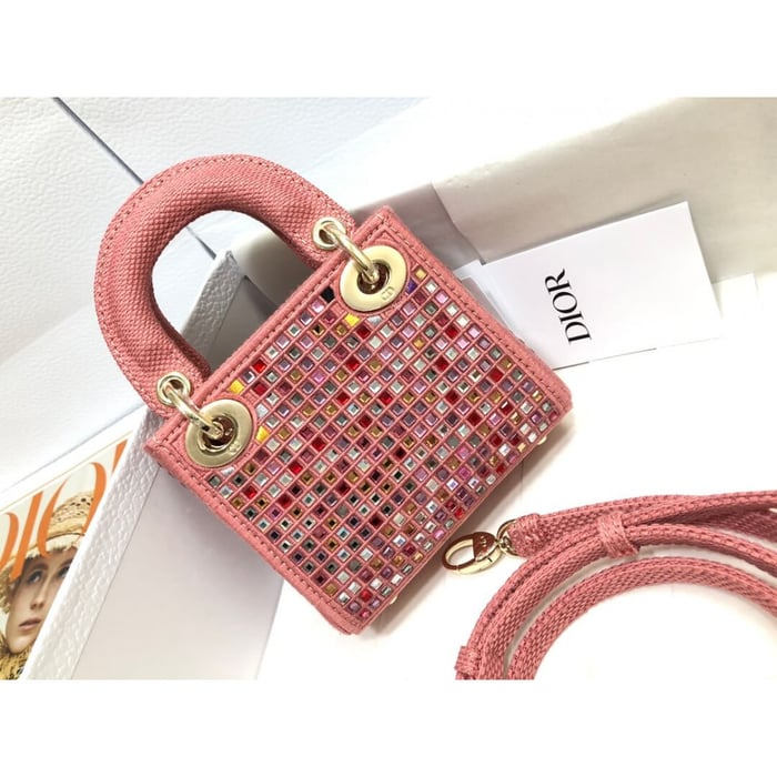 Home Shop All Bags Dior Micro Lady Dior Bag Dark Pink Metallic Canvas Embroidered with Multicolor Crystals