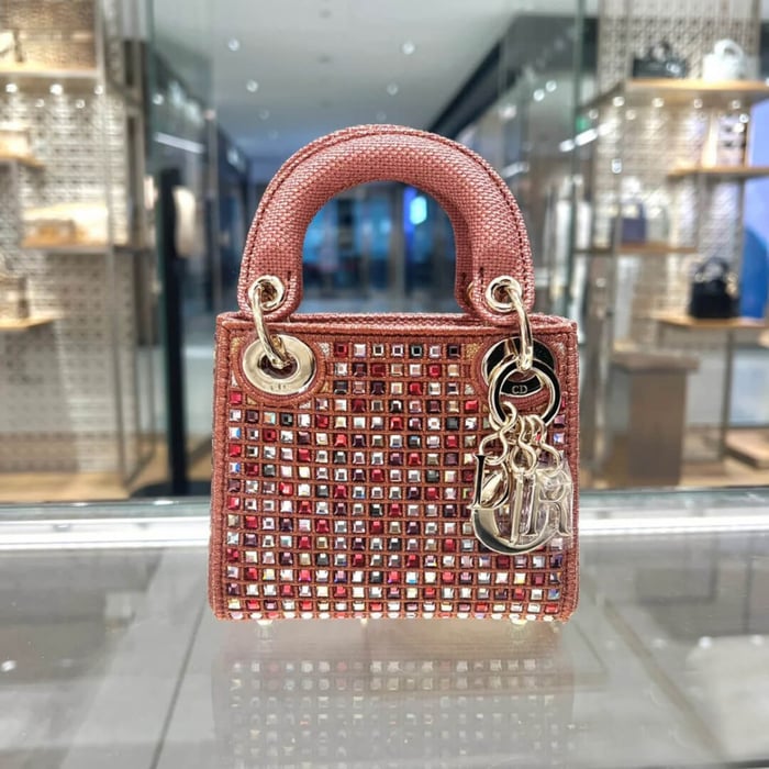 The Lady Dior bag embodies the House’s vision of elegance and beauty. Crafted in dark pink metallic canvas embroidered with multicolor crystals, its iconic silhouette is embellished with a ‘D.I.O.R.’ charm. The micro style can accommodate all the small essentials. Thanks to top handles and an adjustable and removable shoulder strap, the versatile style can be carried by hand, worn over the shoulder or crossbody.