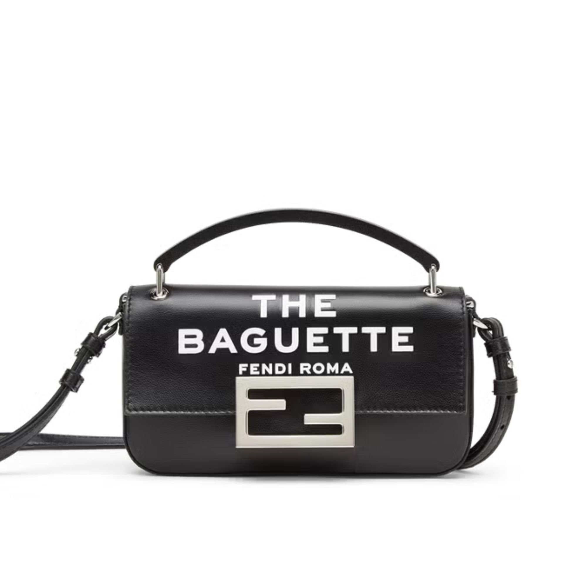Fendi By Marc Jacobs Maxi Baguette Canvas Bag In Leather Black 26Cm/ 10.2in