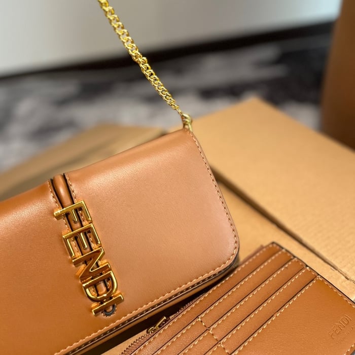 Fendi Fendigraphy Wallet On Chain Brown 21Cm