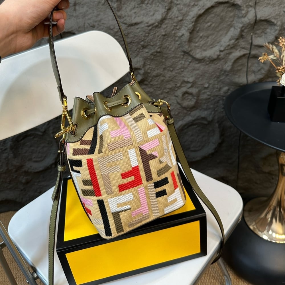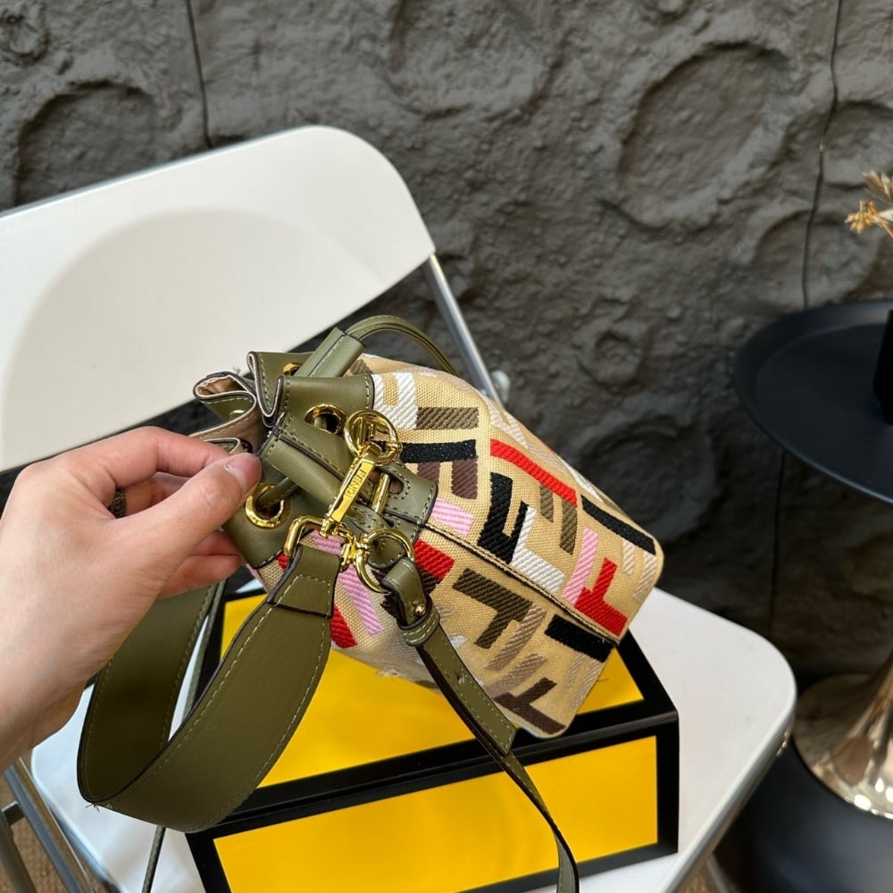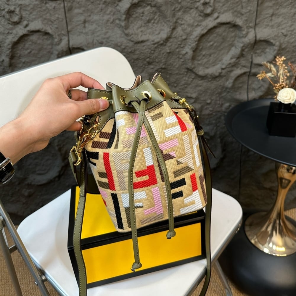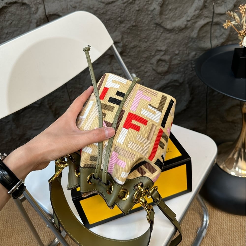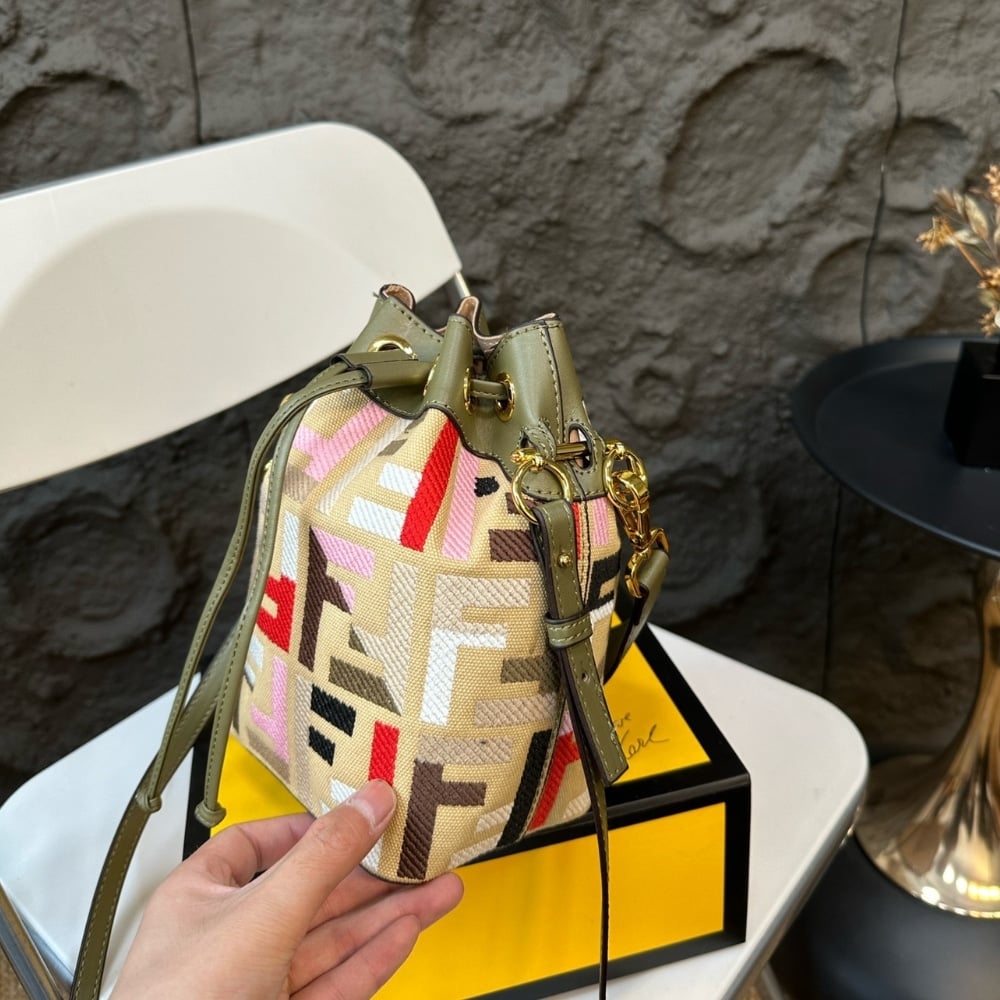 Fendi Mon Tresor Canvas Mini Bag With Ff Embroidery Multicolour 14Cm