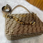 Fendi Olock Zip Dove Brown Tapestry Fabric Bag