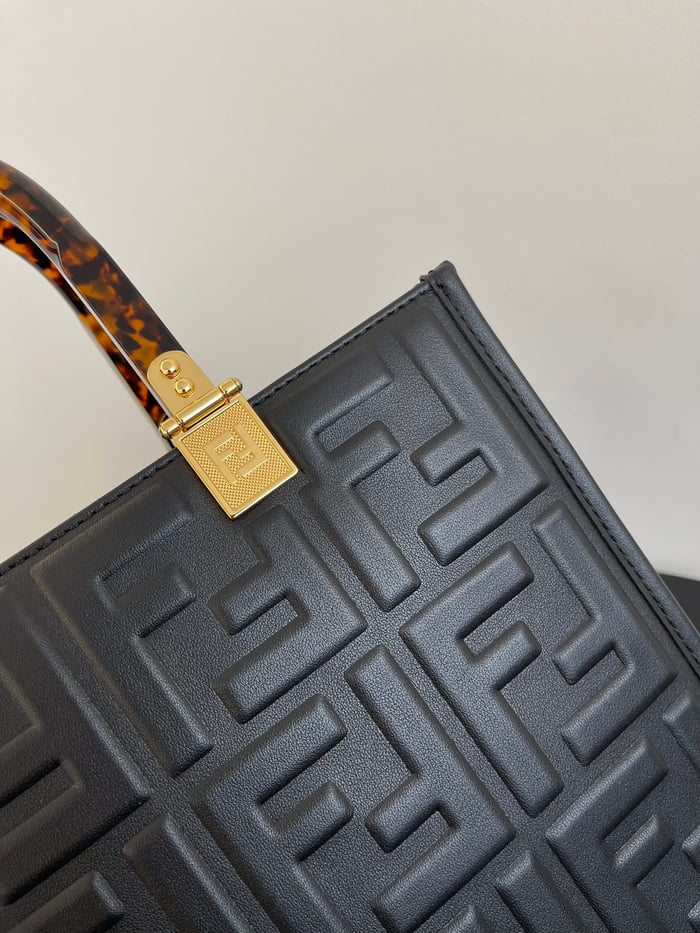 Fendi Sunshine Small Black Leather Shopper 25Cm