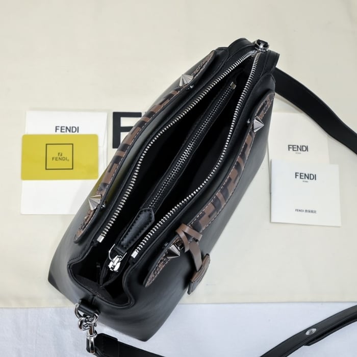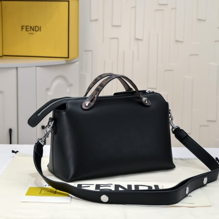 Fendi Women By The Way Regular Leather Boston Bag Black 28Cm