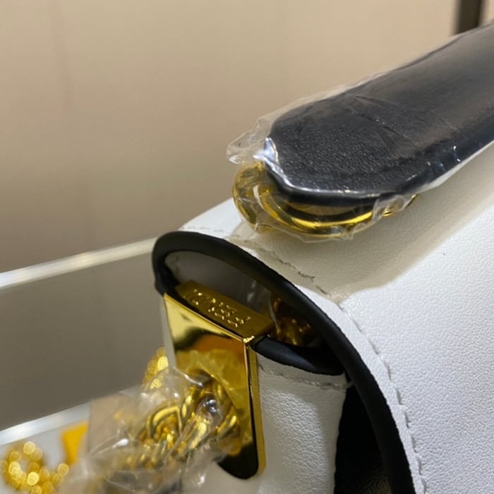 Fendi Women Mini Baguette Chain Shoulder Bag White 19Cm