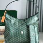 Goyard Bohème Hobo Bag 42Cm Green Canvas Chevroches Calfskin