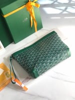 Goyard Conti Pouch 24 Cm Green Lambskin And Goyardine Canvas