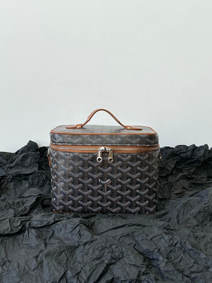 Goyard Goya Makeup Box Bag 20Cm Black And Tan Canvas