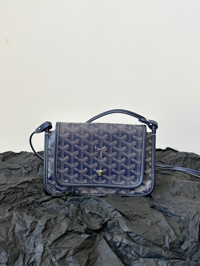 Goyard Plumet Pocket Wallet 20cm Navy Blue Goyardine Canvas And Lambskin Trim