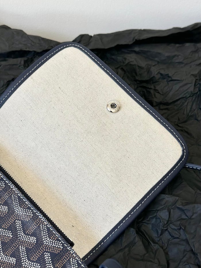 Home Shop All Bags Goyard Goyard Plumet Pocket Wallet 20cm Navy Blue Goyardine Canvas And Lambskin Trim