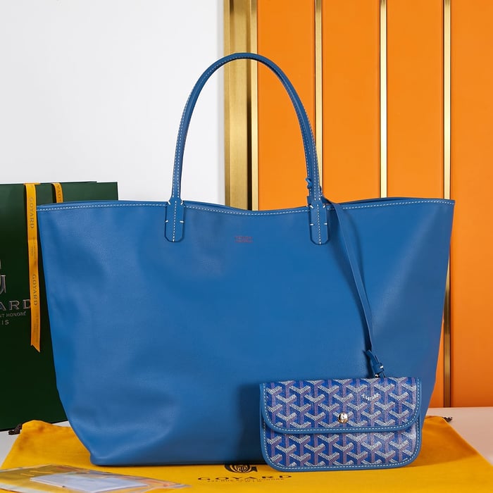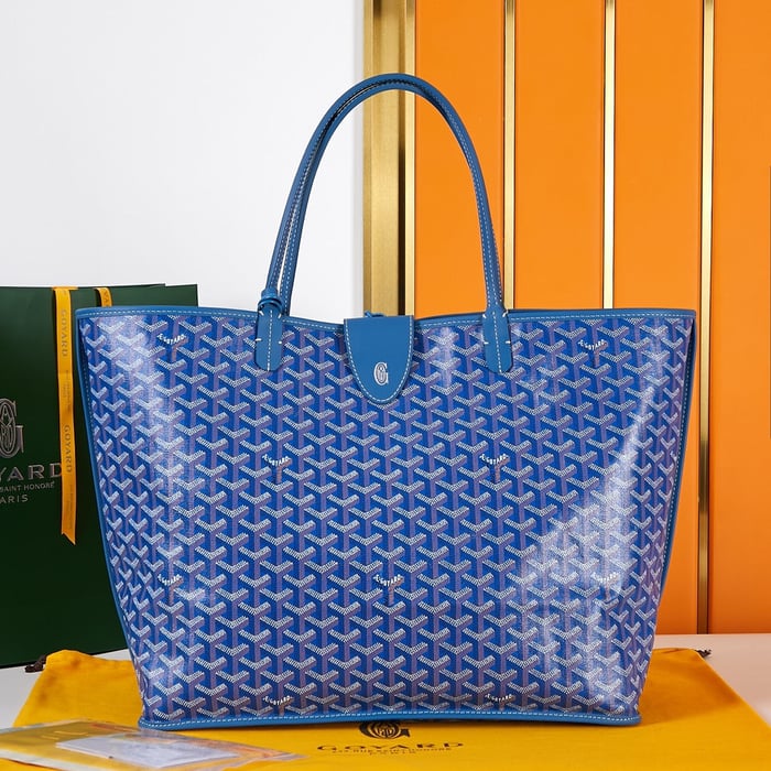 Home Shop All Bags Goyard Goyard Saint Louis Gm 40 Blue Canvas Chevroches Calfskin