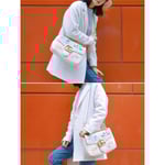 – Sliding chain strap can be worn as a shoulder strap with 22” drop, as a top handle with 12” drop or as a cross body bag