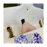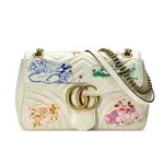 The playful image of Mickey and Minnie Mouse defines this GG Marmont medium shoulder bag in ivory matelassé leather. In celebration of the Lunar New Year, Disney’s legendary characters appear throughout Gucci’s ready-to-wear and accessories for the Cruise 2020 collection, displayed as colorful prints, embroidered patches or jacquard motifs.