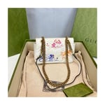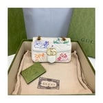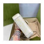 The playful image of Mickey and Minnie Mouse defines this GG Marmont small shoulder bag in ivory matelassé leather. In celebration of the Lunar New Year, Disney’s legendary characters appear throughout Gucci’s ready-to-wear and accessories for the Cruise 2020 collection, displayed as colorful prints, embroidered patches or jacquard motifs.