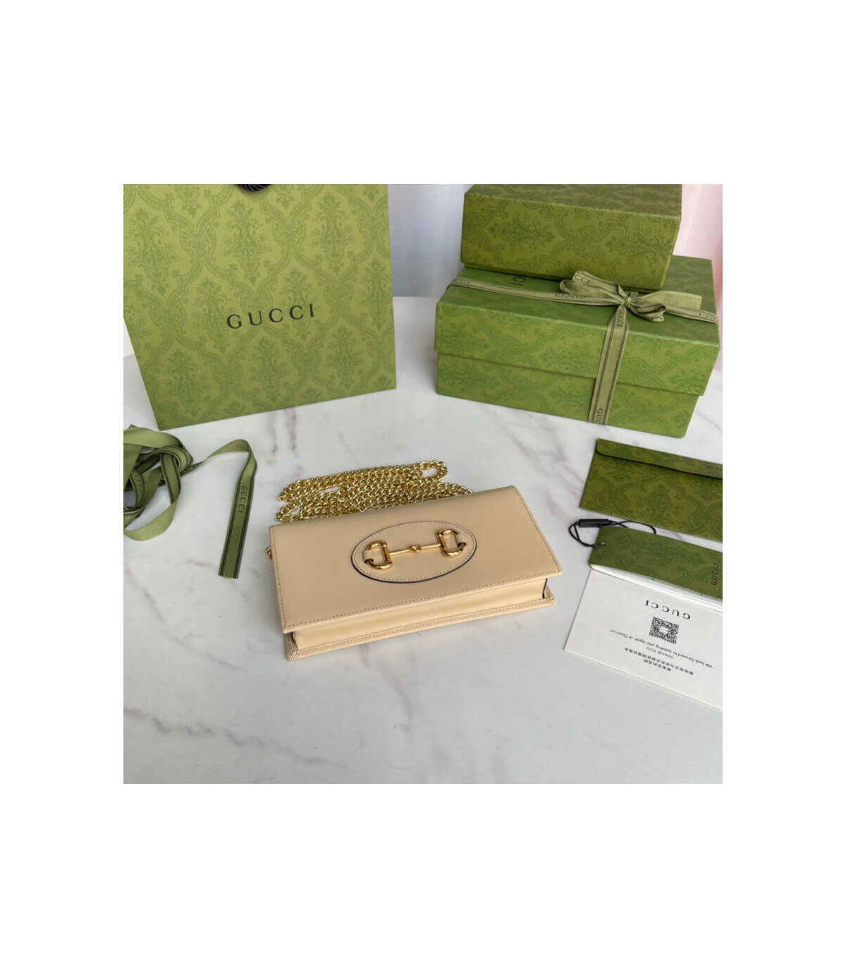 Gucci Horsebit 1955 Chain Wallet in Beige Leather