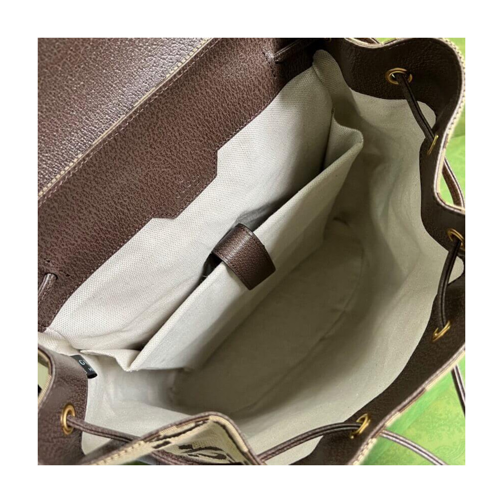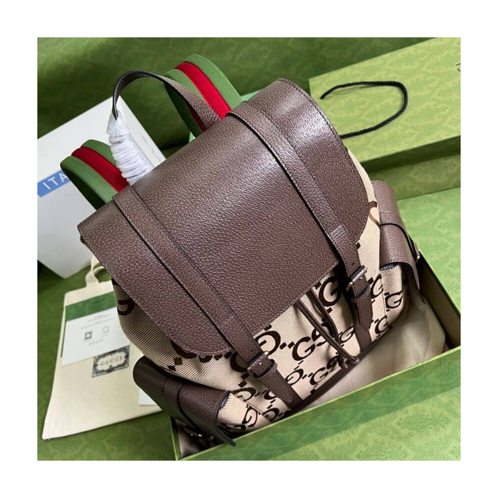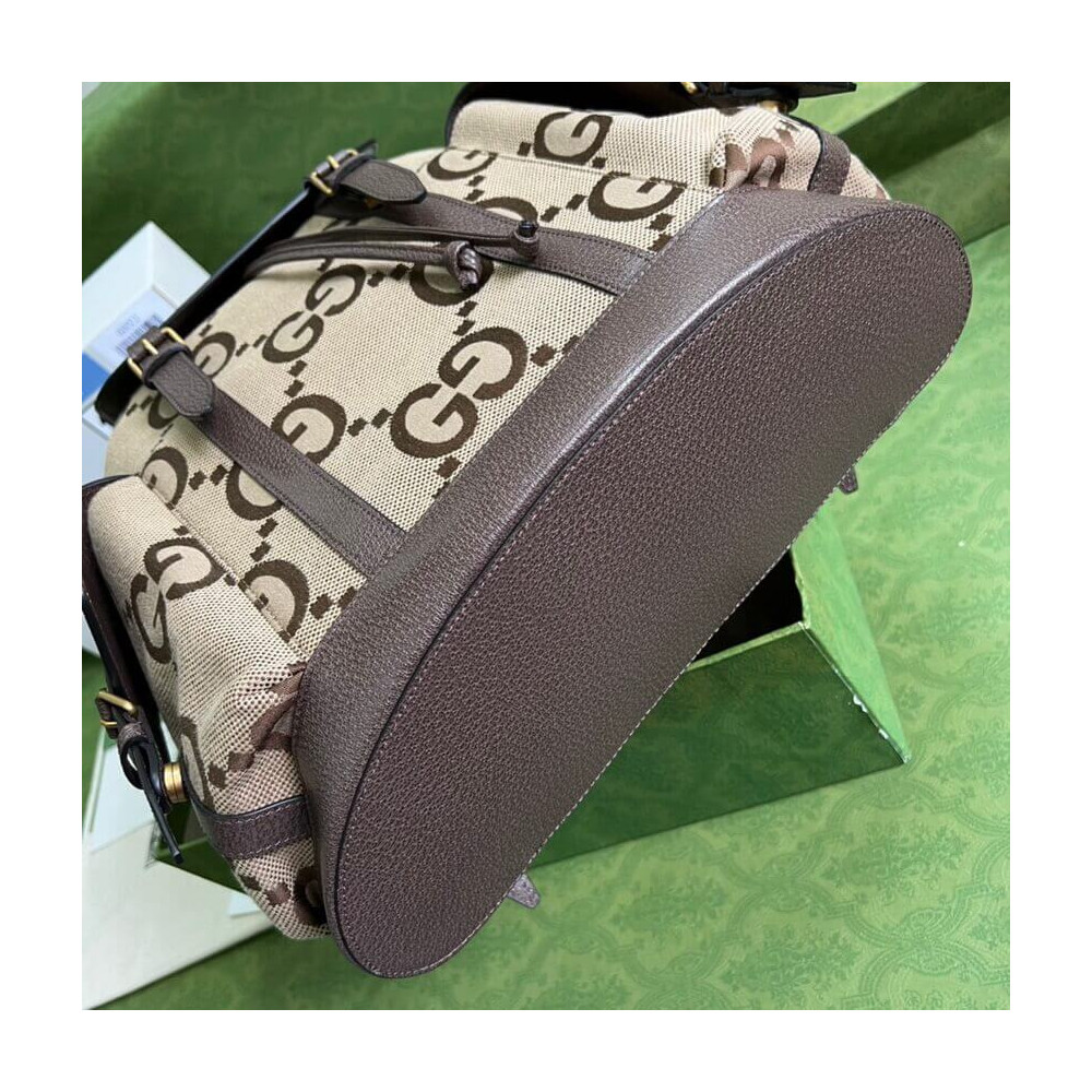 Introduced for the Aria Collection, the GG motif appears in a maximalist, jumbo-sized version atop this backpack. The House’s logo symbols continue to be reimagined each season, celebrated in different ways. The accessory is accentuated by a contrasting brown leather trim.
