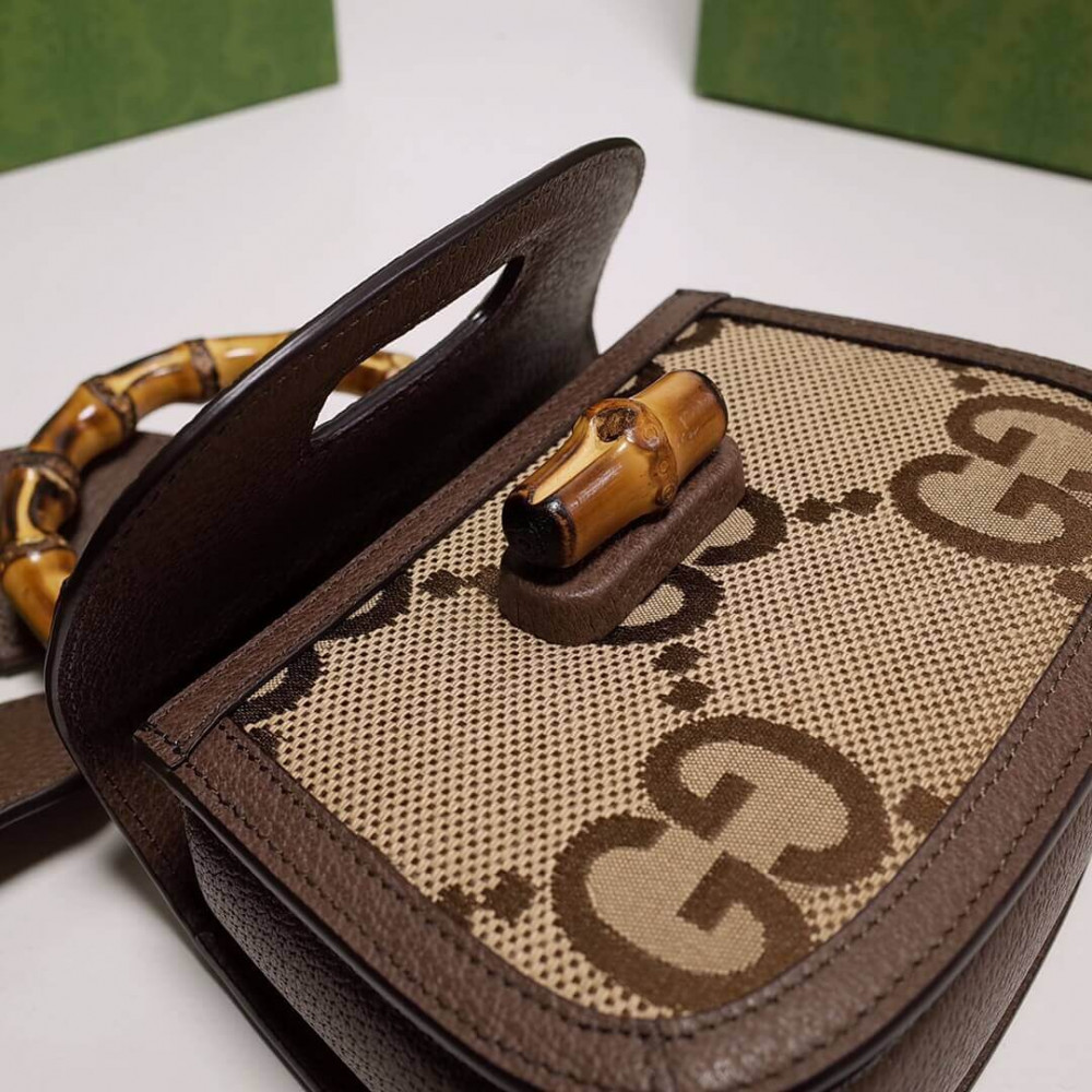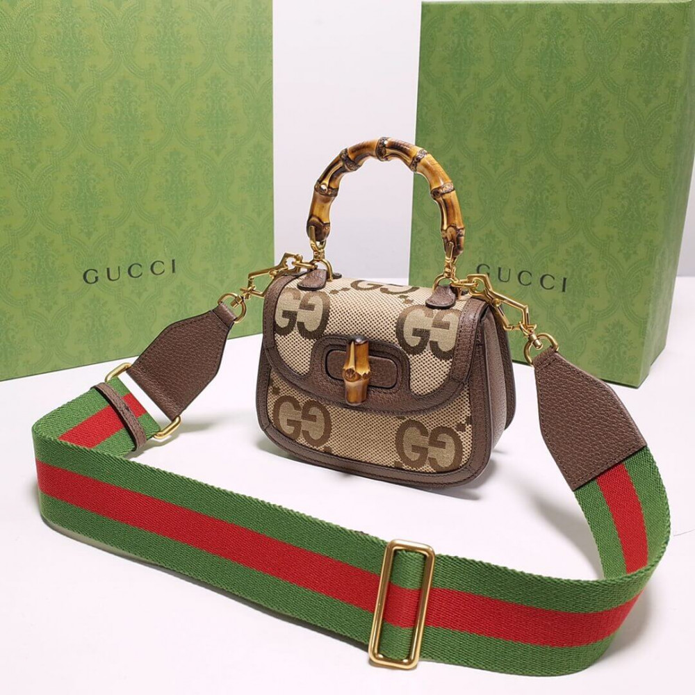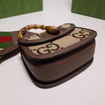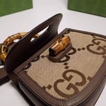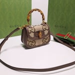 Instantly recognizable emblems of the brand, logos enrich designs in new and unexpected ways. Behind every logo lies the tradition and value of the House, an everlasting medium one can wear again and again. Following the idea of constant change and experimentation, different iterations of the logo have been presented each collection. The jumbo GG, a new, maximalist version of the historic monogram, animates a selection of ready-to-wear and accessories for the Aria collection like this mini bag.