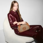 The new Gucci Blondie bag, whose distinctive logo first appeared in the House’s collections in the early 1970s, weaves together past and present in a fusion of nostalgia and modernity. Presented in beige and ebony Original GG canvas with a smooth brown leather trim, this small bag is complete with a top handle and adjustable shoulder strap.