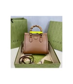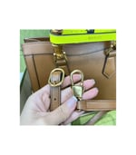Combining recognizable elements of the House, the small tote bag is defined by its bamboo handles and Double G hardware. Crafted from black leather, the accessory is further accentuated by two neon bands, a playful reference to the bands used to keep handles in shape.