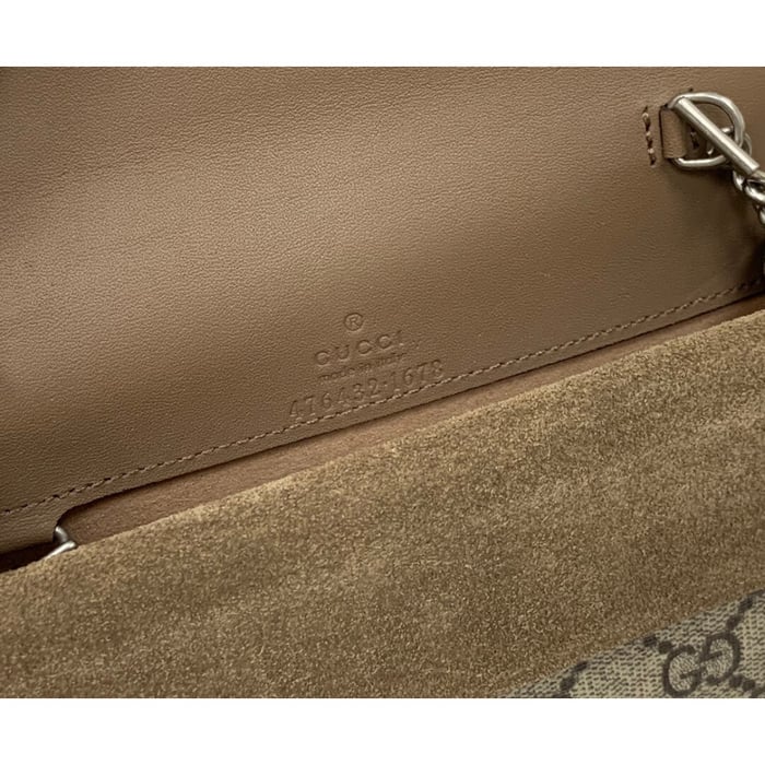 – GG Supreme canvas, made using an earth-conscious process, with taupe suede detail