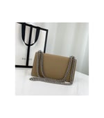 – Sliding chain strap can be worn as a shoulder strap with 23″ drop or can be worn as a top handle with 12.5″ drop