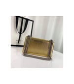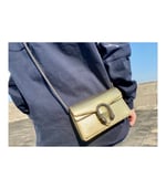 – Sliding chain strap can be worn as a shoulder strap with 23″ drop or can be worn as a top handle with 12.5″ drop