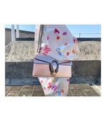 – Sliding chain strap can be worn as a shoulder strap with 23″ drop or can be worn as a top handle with 12.5″ drop