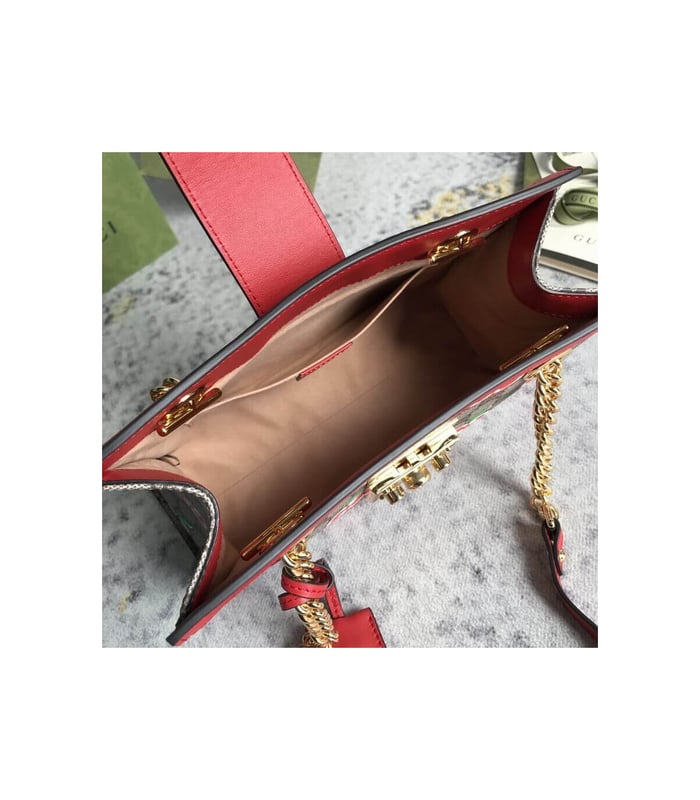 In celebration of Chinese Valentine’s Day, a special collection of styles features cartoon-style apples playfully set against the House’s monogram, which are cleverly matched with the brand’s double G-letter interweaving patterns, showing a fun design. This shoulder bag is designed with a key lock to create a chic finishing touch.