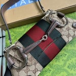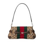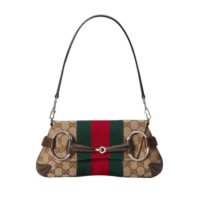 Gucci successfully recalls its past by connecting the archives to the present day. Adorned with a maxi Horsebit, first made popular during the early ‘2000s, this silhouette continues to be one of the most recognizable handbags of the House. Revisited for the Fall Winter 2023 collection, it is presented in various colors and textures that follow a contemporary approach.