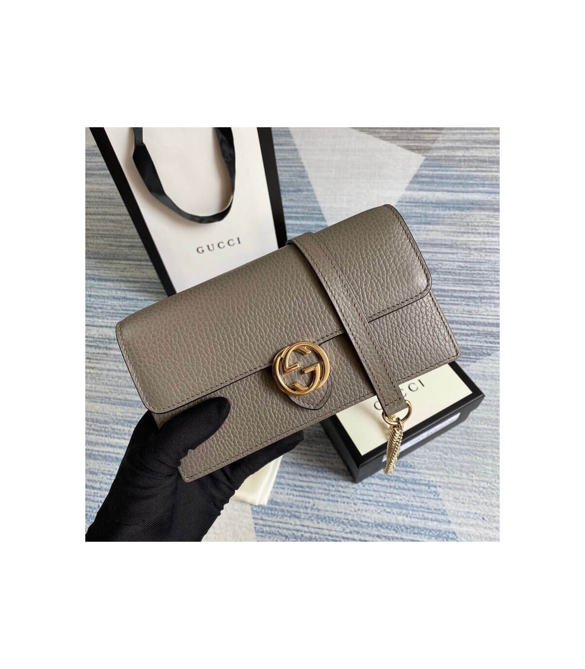 Gucci GG Interlocking Wallet On Chain Grey