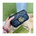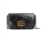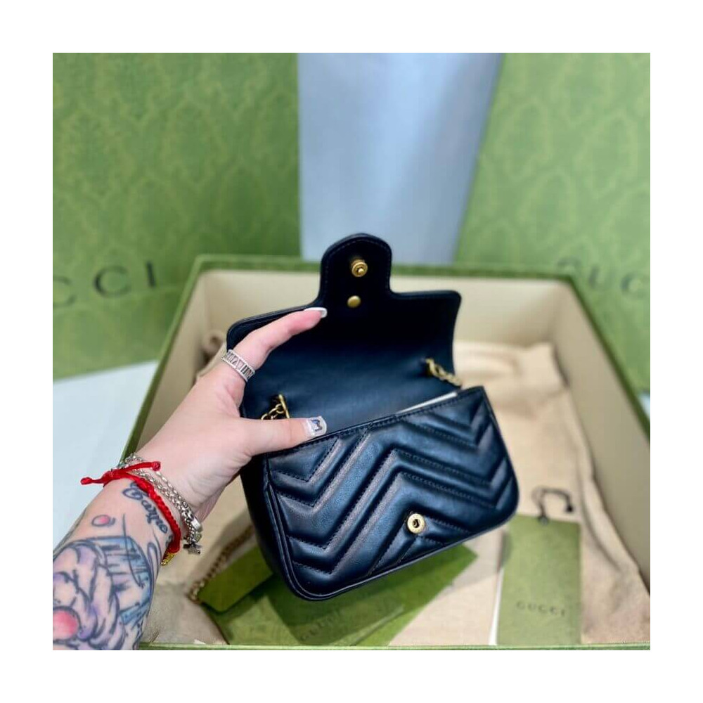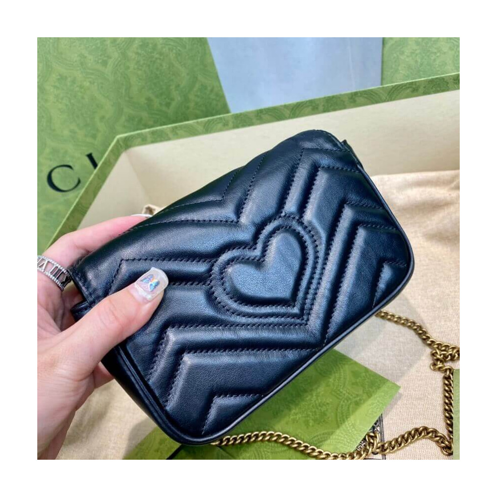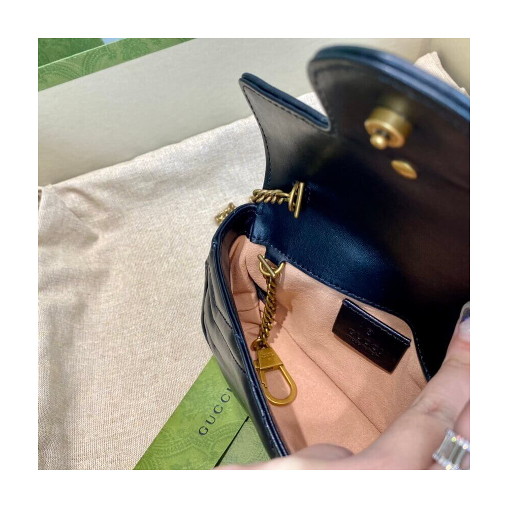 The GG Marmont mini bag has a key ring that can be used to attach it to a separate larger bag. It has a softly structured shape and a flap closure with Double G hardware. The hardware is inspired by an archival design from the ’70s. Made in matelassé chevron leather.