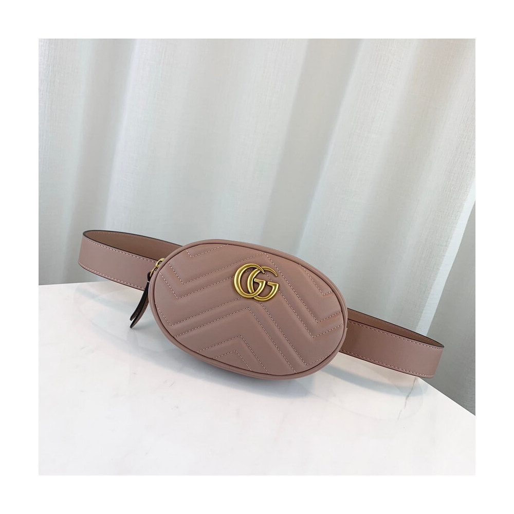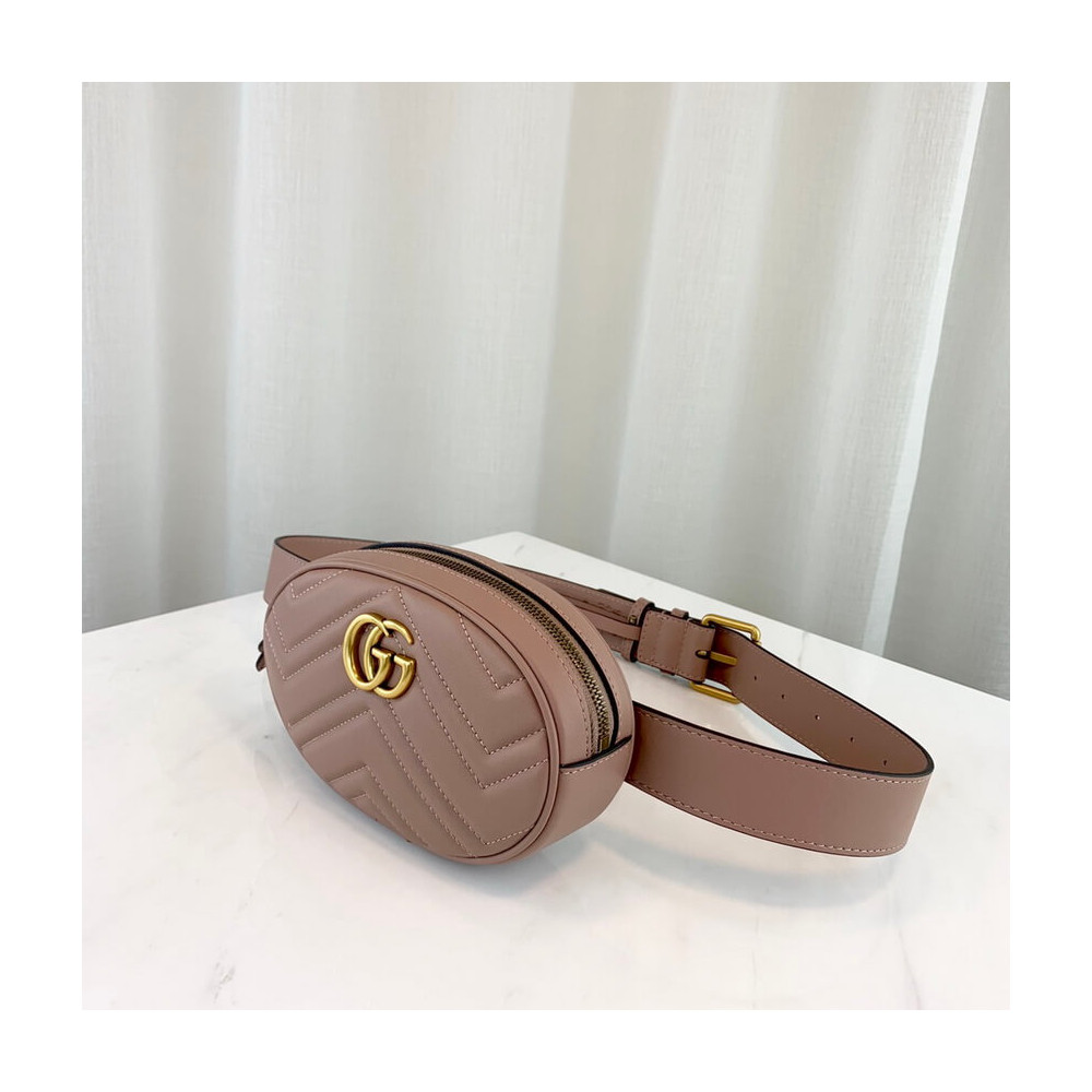 Gucci GG Marmont Matelasse Leather Belt Bag Nude Pink