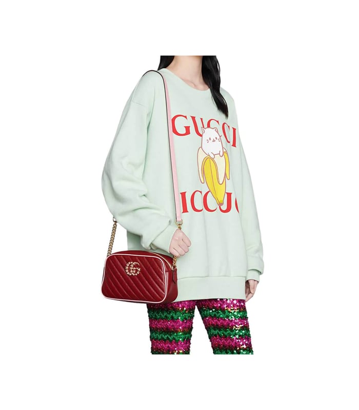 Home Shop All Bags Gucci Gucci GG Marmont Small Shoulder Bag Red and Emerald Leather