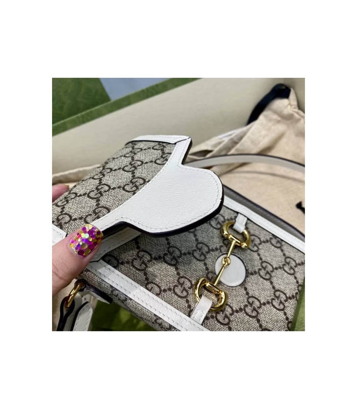 Home Shop All Bags Gucci Gucci GG Supreme Horsebit 1955 Mini Bag White