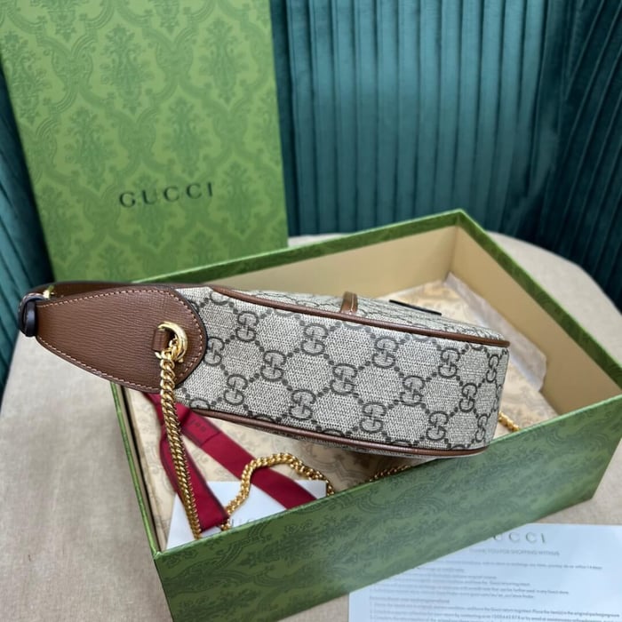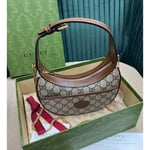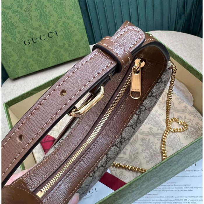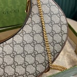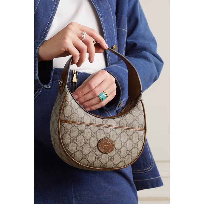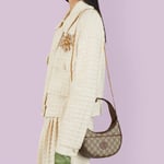 With a crescent silhouette in GG Supreme canvas, this mini bag has a defined retro feel. Each collection is a journey through different decades and eras, combining vintage elements with archival codes or contemporary details to create new designs that exist outside of space and time. The mini accessory reflects this fascination with the past.