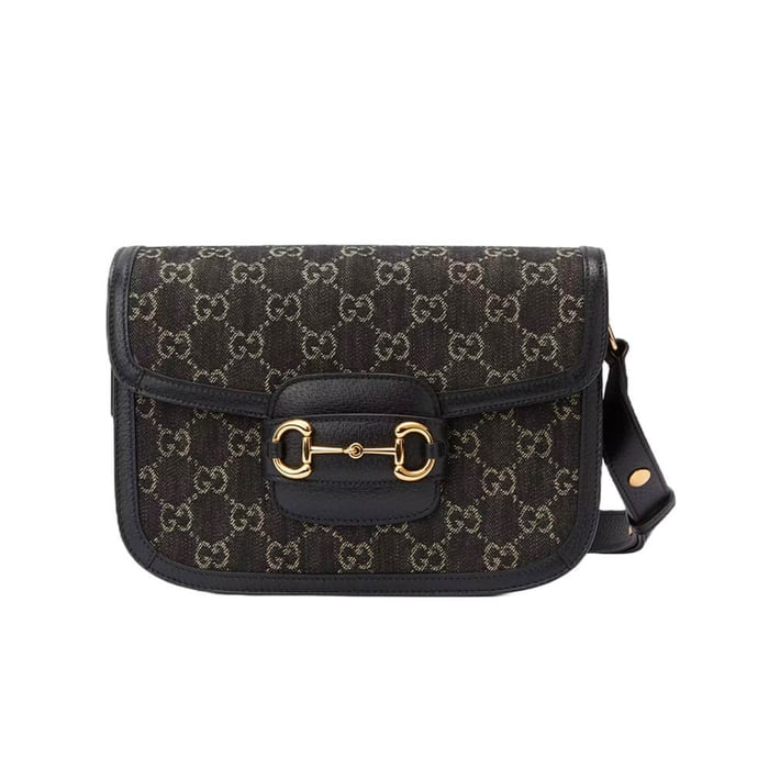 A historic design, the Gucci Horsebit 1955 shoulder bag is reimagined in denim. A message about leaving fashion’s old rules behind, the House’s designs convey the idea that pieces should be timeless–not just in fashion for one season. Speaking to this theme, the emblematic style is linked to the Gucci’s rich history by the recognizable Horsebit hardware and monogram motif.