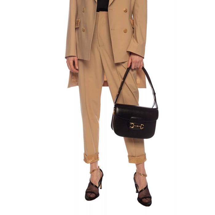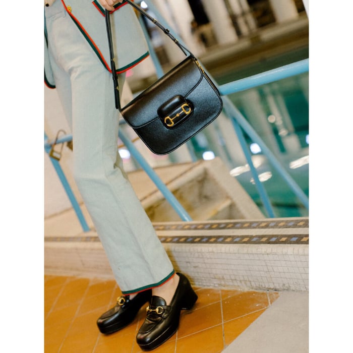 Introduced for Cruise 2020, the Gucci 1955 Horsebit bag is recreated from an archival design. With the same lines and forms first introduced over six decades ago, the accessory unifies the original details with a modern spirit, highlighting the Horsebit. Part of Gucci’s genetic code, the double ring and bar design has been established as one of the most distinctive elements among the House symbols borrowed from the equestrian world. Presented on a small flap shoulder bag, the hardware is paired with textured brown leather and completed with a special mechanism that adjusts the length of the shoulder strap so it can be carried on one shoulder or cross body.