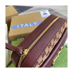 The Horsebit has become synonymous with the brand. Tracing back to Gucci’s equestrian roots, the double ring and bar design is a piece of the House’s heritage. Here, the gold-toned hardware defines this small rectangular shoulder bag. The accessory is presented in Original GG canvas in vintage-inspired colors.
