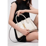From the Epilogue collection, this Jackie 1961 medium tote is crafted in smooth white leather with gold-toned hardware and the signature piston closure. Designed with a detachable shoulder strap and spacious interior, it blends timeless elegance with everyday functionality.